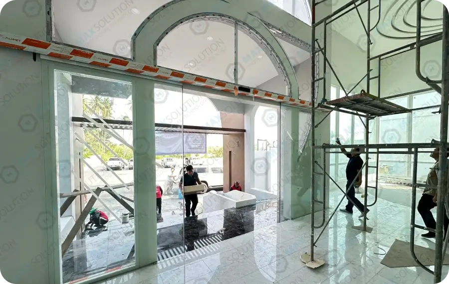 ติดตั้งประตูอัตโนมัติ (AUTO DOOR) EZY ติดตั้งในพื้นที่ที่จำกัดได้ เนื่องจากไม่ต้องมีพื้นที่ในการเปิดประตูแบบปกติและมีความทนทาน