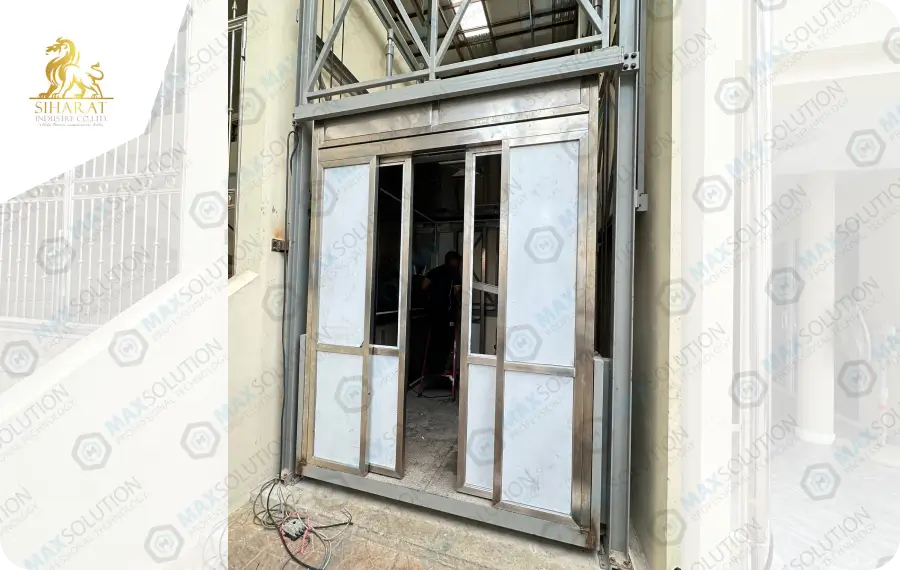 ติดตั้งระบบประตูบานเลื่อน DORGEN 2 ชุด และเชื่อมต่อกับระบบลิฟท์โดยจะทำการเปิดอัตโนมัติเมื่อลิฟท์จอด ณ ประตูนั้นๆ โดยใช้บานสแตนเลส