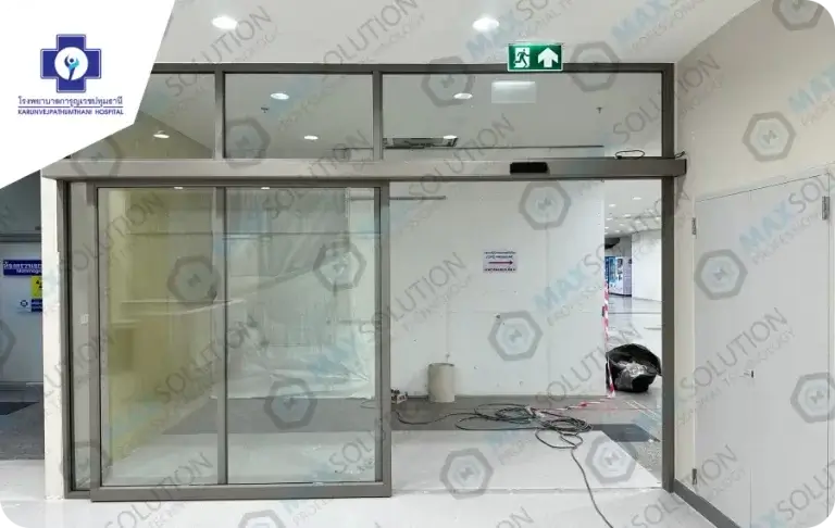 โรงพยาบาลการุญเวช ปทุมธานี เลือกติดตั้งระบบประตูอัตโนมัติ (Auto Door) DORGEN พร้อมทำสีรางสีพิเศษและใช้เซ็นเซอร์ตรวจการเคลื่อนไหวเพื่อเปิดประตู