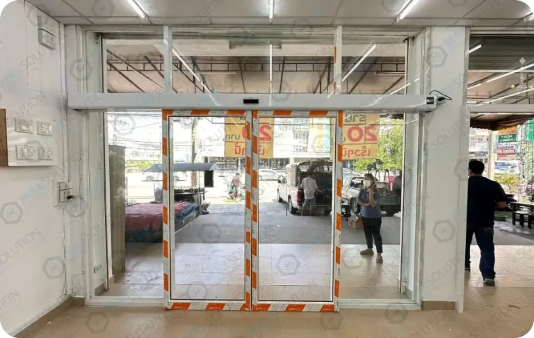 บริการติดตั้งประตูอัตโนมัติ EZY (Automatic Door) ชนิดบานเฟรมคู่ ให้กับตัวแทนจำหน่ายที่ร้านจำหน่ายสินค้าในซอยสะแกงาม 36
