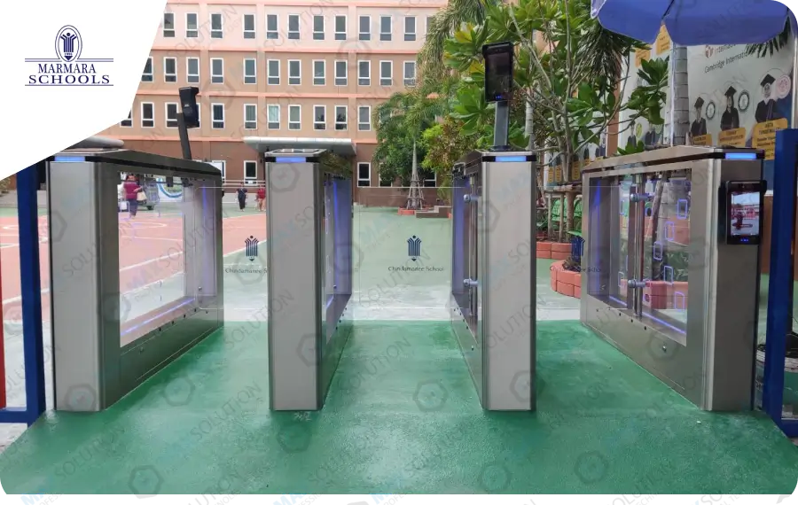 ติดตั้งประตูกั้น Swing Gate ESW-950 จำนวน 4 เลนพร้อมเครื่องสแกนใบหน้า(Face Scan) L4 เครื่องสแกนใบหน้าสำหรับลงเวลานักเรียน