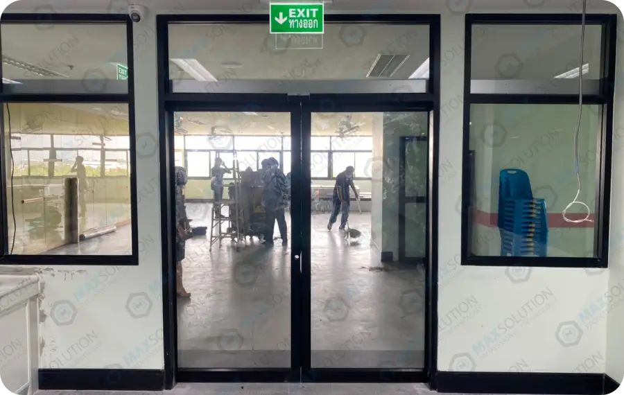 ติดตั้งประตูบานเลื่อนอัตโนมัติ DORGEN เพิ่มเติม (เฟส 4) พร้อมเครื่องสแกนใบหน้า H342 สำหรับควบคุมการเข้าห้องต่างๆ พร้อมระบบป้องกันหนีบ