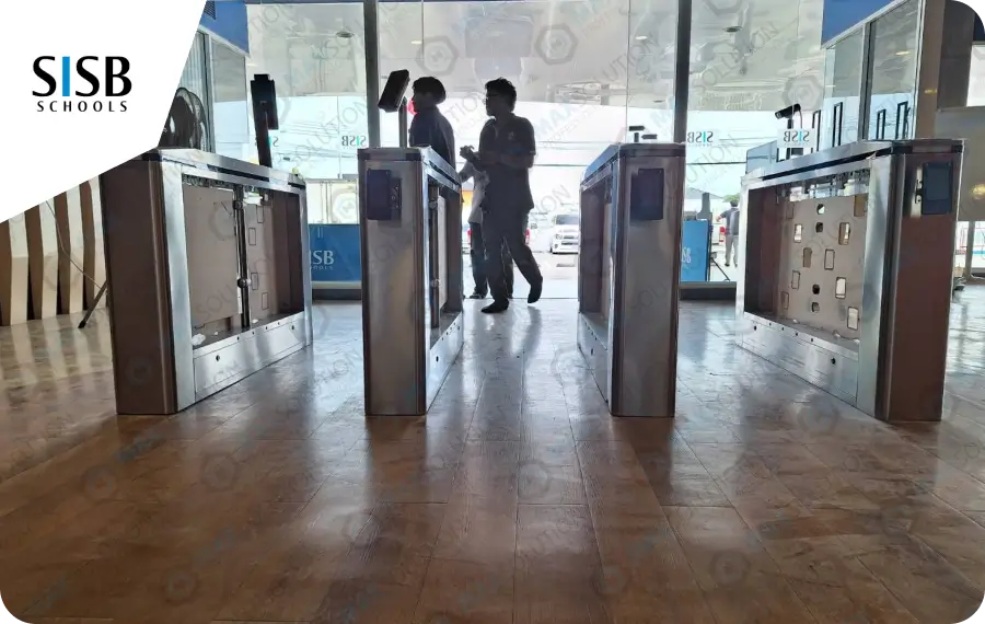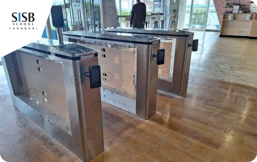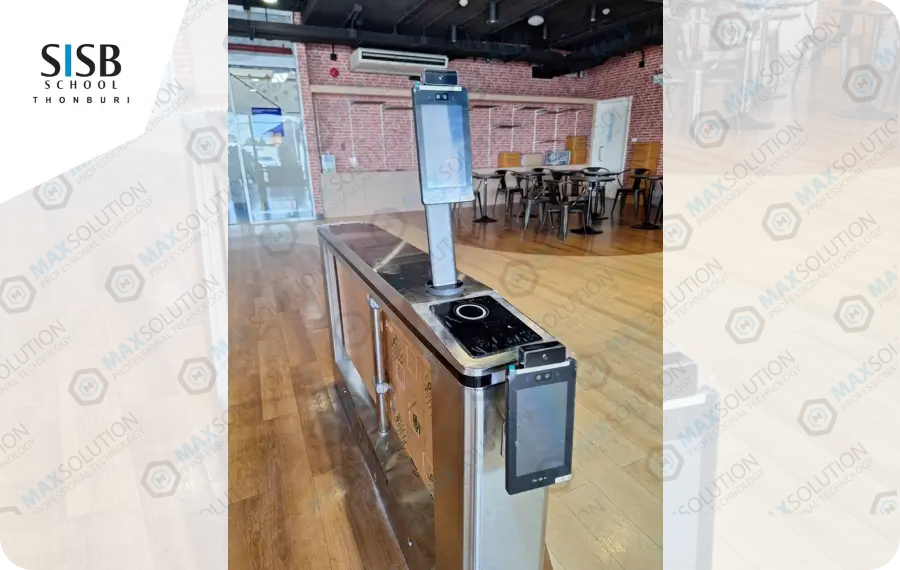 ติดตั้งเครื่องสกแนใบหน้า M7T พร้อมประตูกั้นไฟฟ้าแบบ Swing Gate Turnstile รุ่น ESW-950 พร้อมสแกนใบหน้าสำหรับเด็กเล็กเพื่อใช้ในการลงเวลาของนักเรียน