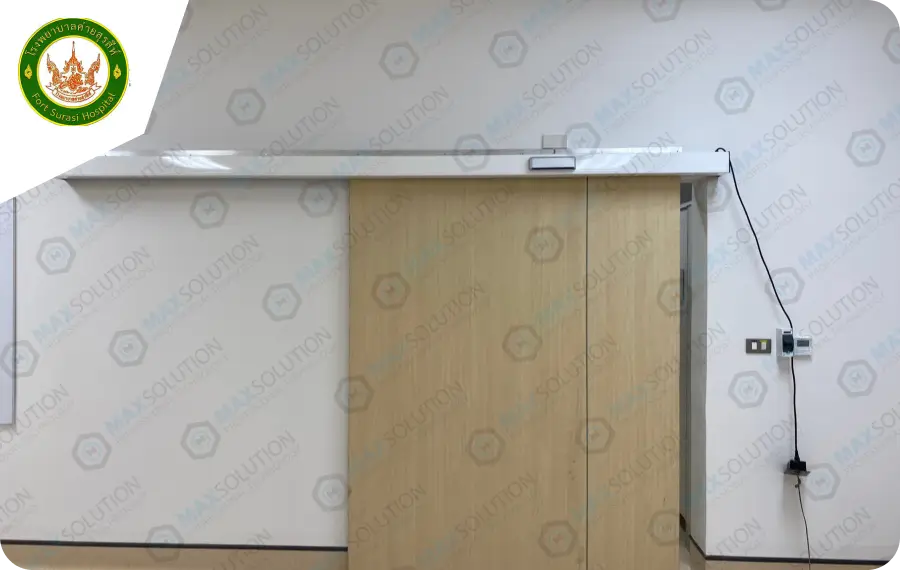 หน้างานโรงพยาบาลเกษมราษฎร์บางแคติดตั้งชุดระบบประตูบานสวิงอัตโนมัติ Automatic Swing Door พร้อมเครื่องสแกนใบหน้า รุ่น H342