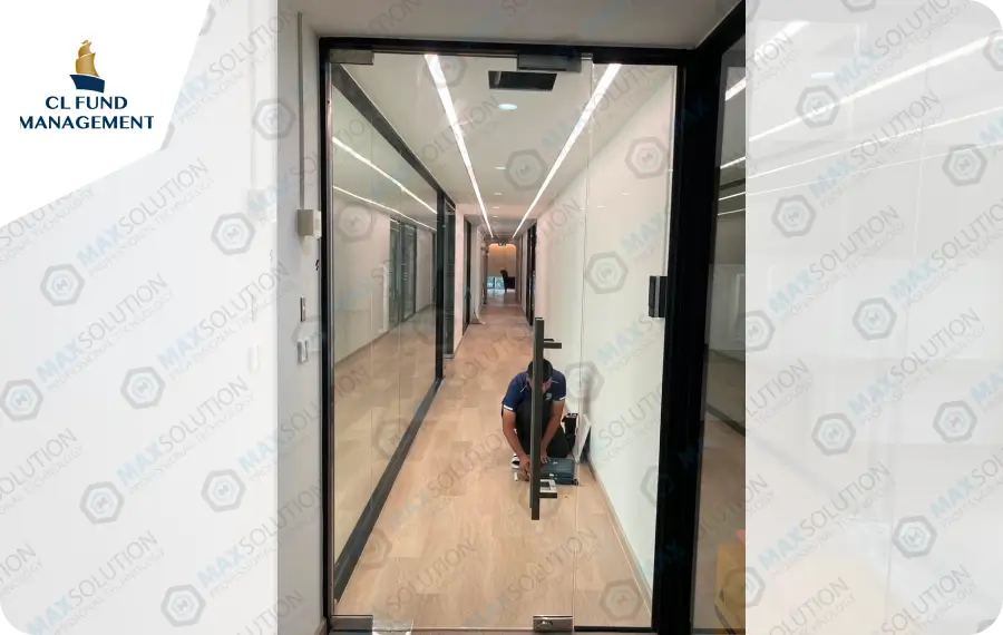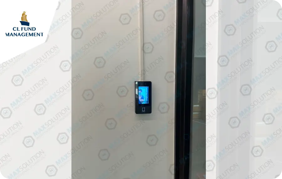 บริษัท หลักทรัพย์จัดการกองทุน ซีแอล จำกัด ติดตั้งเครื่องสแกนใบหน้า H342 พร้อมชุดกลอนแม่เหล็ก สแกนใบหน้าเพื่อยืนยันตัวตนของผู้เข้า-ออก