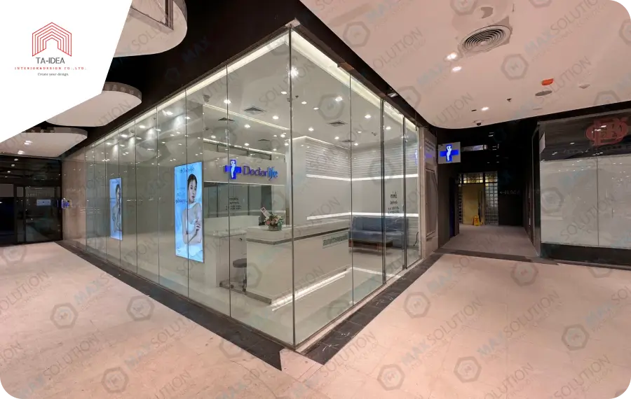 ติดตั้งระบบประตูบานเลื่อนอัตโนมัติ DORGEN สำหรับประตูกระจกบานเปลือยพร้อมโครงสร้างที่ดอกเตอร์ไลฟ์คลีนิค สาขาเดอะมอลล์บางกะปิ
