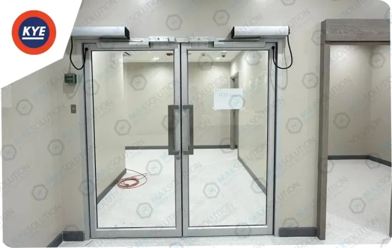 หน้างานโรงพยาบาลเกษมราษฎร์บางแคติดตั้งชุดระบบประตูบานสวิงอัตโนมัติ Automatic Swing Door พร้อมเครื่องสแกนใบหน้า รุ่น H342