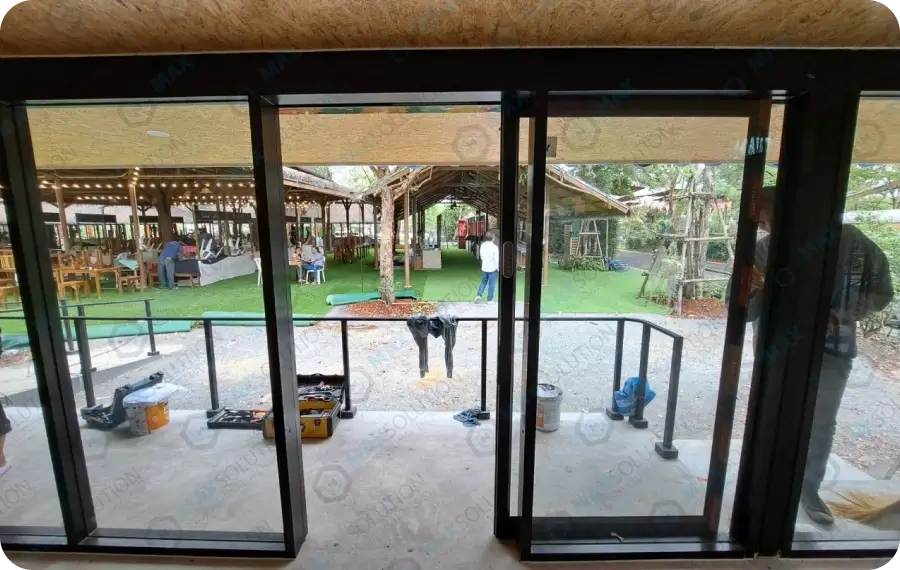 ติดตั้งชุดประตูบานเลื่อนอัตโนมัติ DORGEN บ้านพักส่วนตัวไม่ต้องใช้มือในการเปิดประตูระบบเซ็นเซอร์ในประตูอัตโนมัติสามารถตรวจจับการเคลื่อนไหว