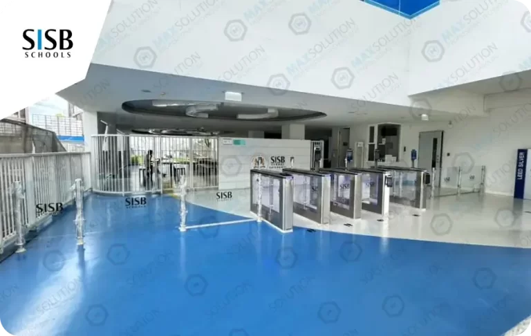 ติดตั้งประตูกั้น Swing Gate ESW-950 จำนวน 4 เลนพร้อมเครื่องสแกนใบหน้า(Face Scan) L4 และ M7 พร้อมรั้วกระจกบริเวณหน้าทางเข้าโรงเรียน