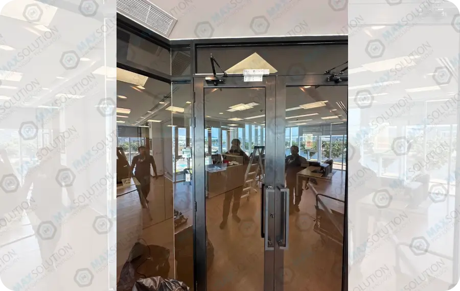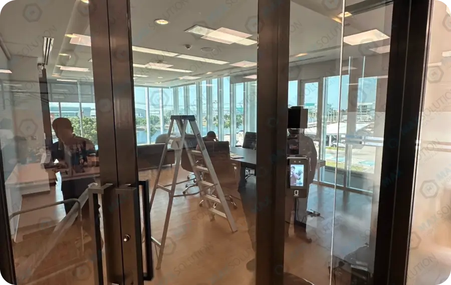 ติดตั้งเครื่องสแกนใบหน้า H342 (FACE SCAN) พร้อมประตูบานเฟรมคู่ใช้เทคโนโลยีการสแกนใบหน้าในระบบควบคุมการเข้าถึง