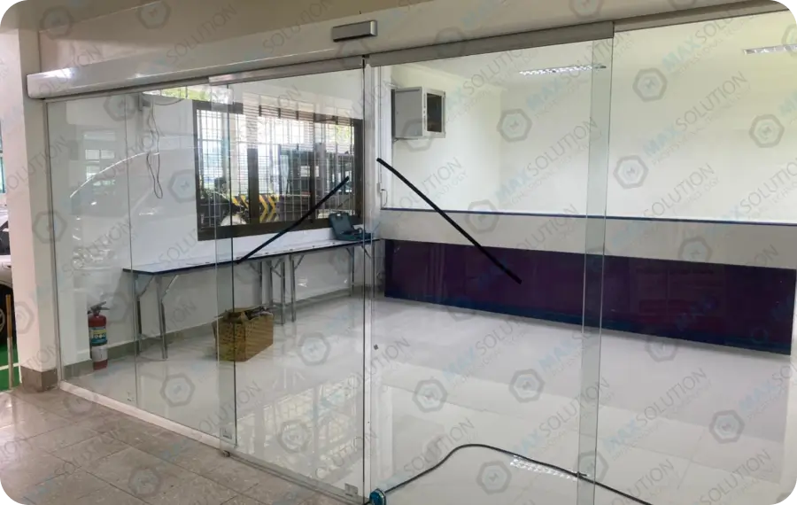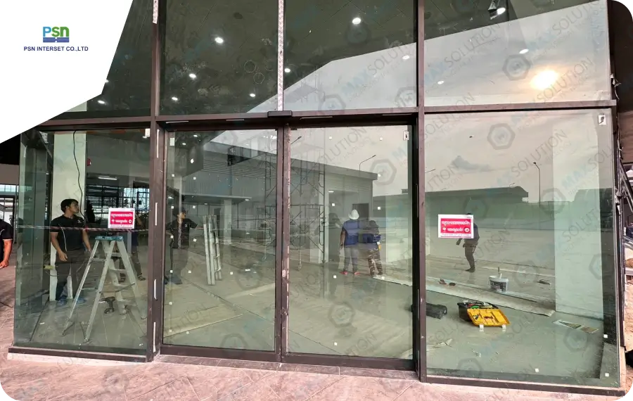 ติดตั้งประตูบานเลื่อนอัตโนมัติ DORGEN สำหรับประตูบานเลื่อนคู่ให้กับผู้รับเหมาที่เป็นตัวแทนจำหน่ายของเรา ที่สำนักงานแม็คโคร สาขาวังน้อย