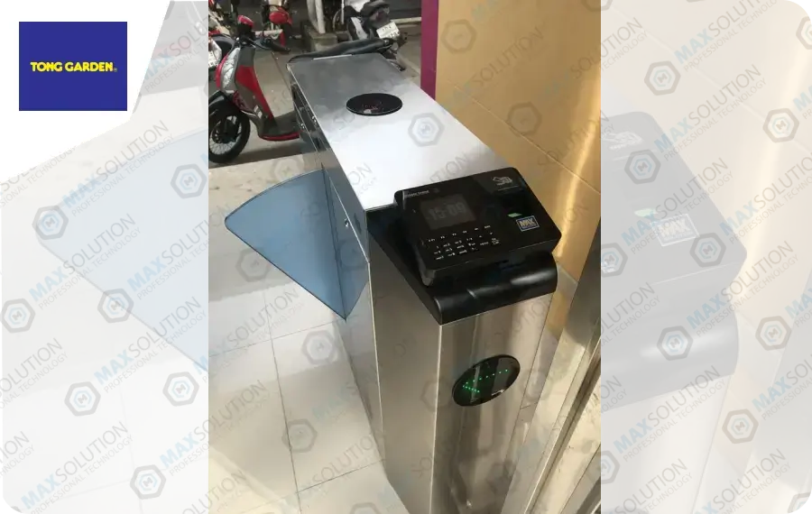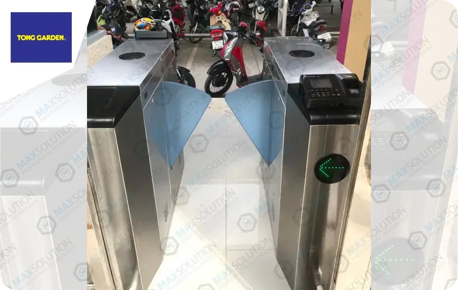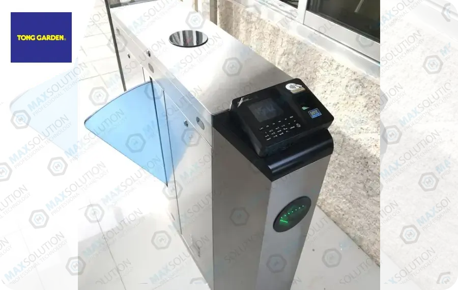 ทองการ์เด้น ผู้ผลิตผลิตภัณฑ์ถั่วและขนมขบเคี้ยวหลายหลายชนิดติดตั้ง ประตูกั้น Flap Gate บริเวณทางเข้าหน้าโรงงานพร้อมเครื่องสแกนนิ้วมือ