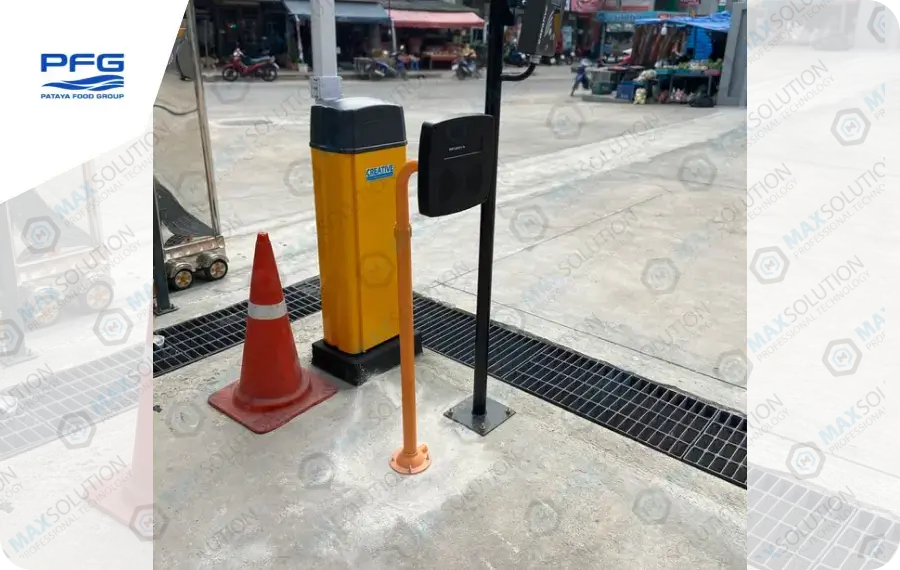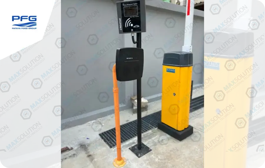 ติดตั้งไม้กั้นรถยนต์ (Car Park Barrier) พร้อมระบบอ่านบัตรผ่านด้วย Bluetooth และ Long Rang Reader สำหรับรถของบุคลากรเข้าจอดในพื้นที่ของบริษัท