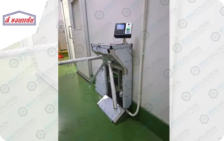ติดตั้งเครื่องสแกนลายนิ้วมือ รุ่น F8 (Finger Scan) พร้อมชุดกั้นไฟฟ้าแบบ 3 ขา (Tripot Turnstile) สำหรับทางเข้าโรงงานเพิ่มเติมอีก 1 จุด