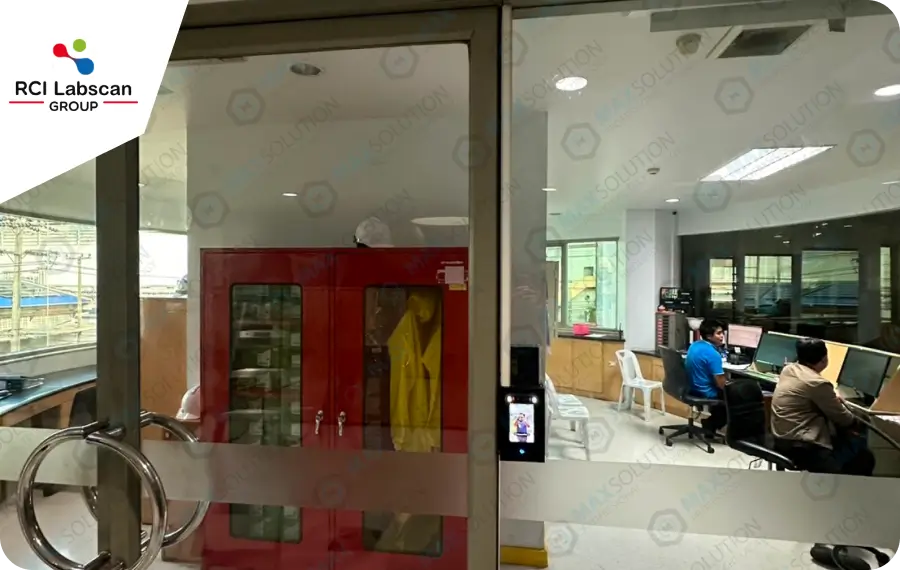 ติดตั้งเครื่องสแกนใบหน้าพร้อมชุดกลอนแม่เหล็กไฟฟ้า รุ่น L4 (Face Scan & Access Control) เพื่อควบคุมและยืนยันตัวตนก่อนเข้าพื้นที่ของบริษัท