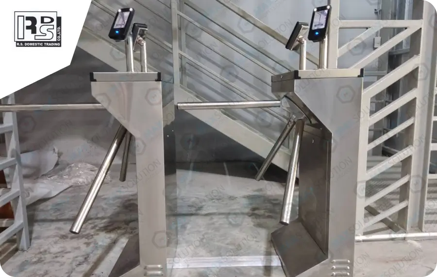 ติดตั้งประตูกั้นแบบ 3 ขา ( Tripod ET300 ) พร้อมเครื่องสแกนใบหน้ามีโครงสร้างที่แข็งแรงและทนทานเพื่อกรองคนเข้าพื้นที่หน้างาน