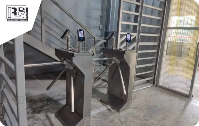ติดตั้งประตูกั้นแบบ 3 ขา ( Tripod ET300 ) พร้อมเครื่องสแกนใบหน้ามีโครงสร้างที่แข็งแรงและทนทานเพื่อกรองคนเข้าพื้นที่หน้างาน