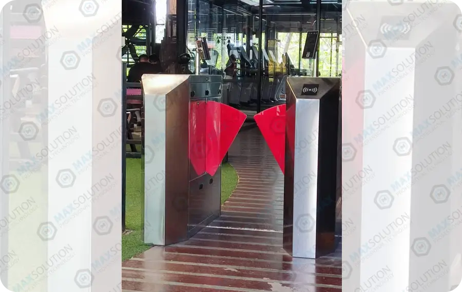 บจก. เก็จขวัญ บิวตี้ บูติค ได้ทำการติดตั้ง FLAP GATE TURNSTILE เปิดหรือปิดตามคำสั่งจากระบบควบคุม เมื่อบุคคลได้รับการอนุญาตให้เข้า-ออก