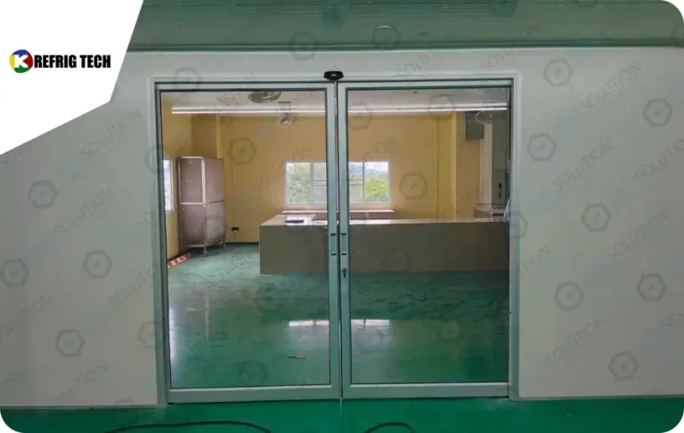 ติดตั้งระบบประตูอัตโนมัติ DORGENพร้อมโครงสร้างและบานประตูแบบบานเฟรมคู่ และใช้เซ็นเซอร์ในการสั่งเปิดเข้าและออกภายในพื้นที่โรงงาน