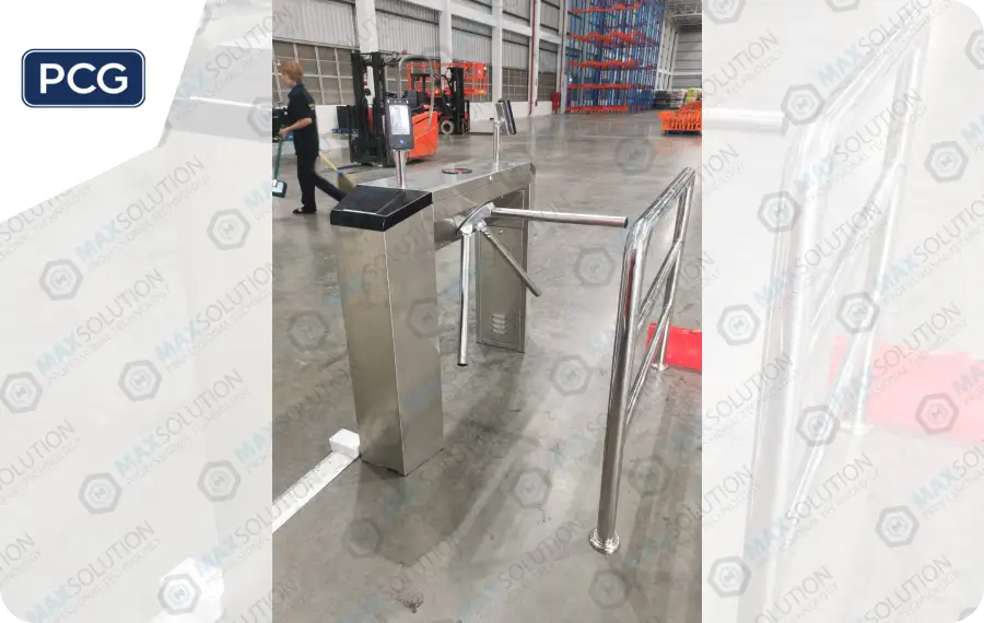 ติดตั้งเครื่องสแกน (FACE SCAN) พร้อม Tripod Turnstile Gate ไม้กั้น 3 ขาช่วยป้องกันการเข้าถึงที่ไม่ได้รับอนุญาต โดยระบบจะเปิดไม้กั้นเฉพาะเมื่อการสแกนใบหน้าได้รับการยืนยันจากระบบ