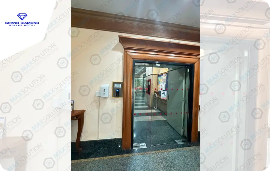 วัดน้อมประชาสรรค์ติดตั้งประตูอัตโนมัติ DORMA จำนวน 2 ชุด เป็นสวิงที่มีความทนทานและประสิทธิภาพสูงใช้เซ็นเซอร์ในการตรวจจับพร้อมระบบป้องกันการหนีบด้วยเซ็นเซอร์