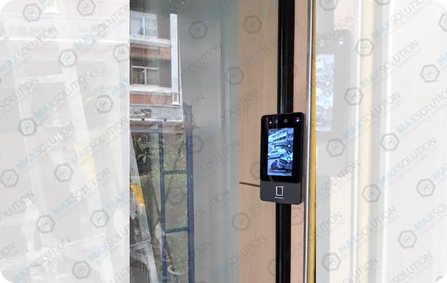 ติดตั้งเครื่องสแกนใบหน้า H342 (FACE SCAN) และชุดประตูบานเฟรมเดี่ยวประตูเลื่อนอัตโนมัติเมื่อยืนยันตัวตนแล้ว ประตูก็จะเปิดอัตโนมัติ
