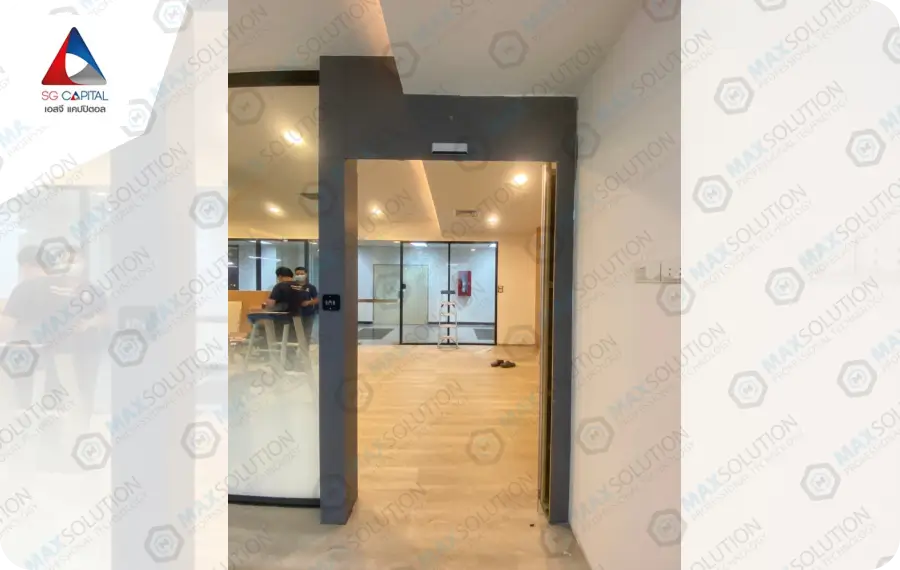 ติดตั้งเครื่องสแกนใบหน้า L4 พร้อมชุดลอนแม่เหล็กไฟฟ้าควบคุมการเข้า-ออก ระบบสามารถบันทึกข้อมูลการเข้าออกของบุคคล พร้อมกับเวลาที่ทำการเข้าออก