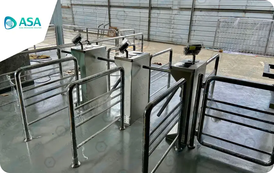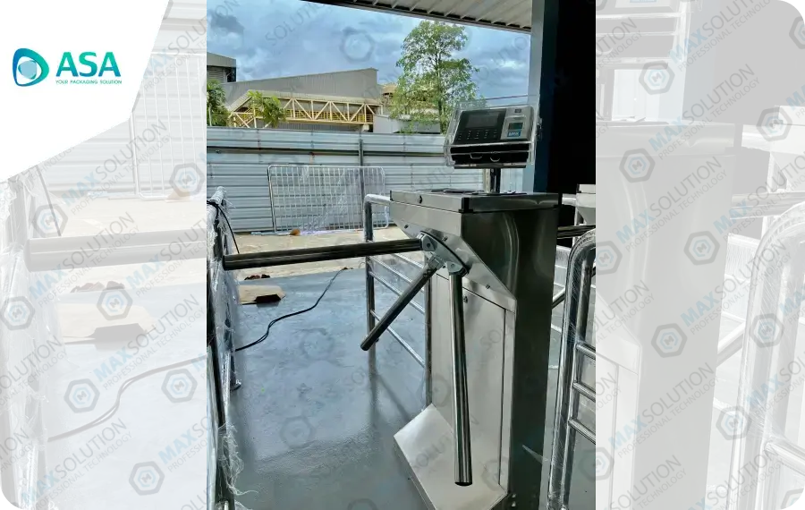 บริษัท เอเซียคราฟท์เปเปอร์ จำกัด ติดตั้งเครื่องกั้นแบบ 3 ขา (Tripot Turnstile) พร้อมเครื่องสแกนลายนิ้วมือ F8 สำหรับลงเวลาและเข้าออกพื้นที่โรงงาน