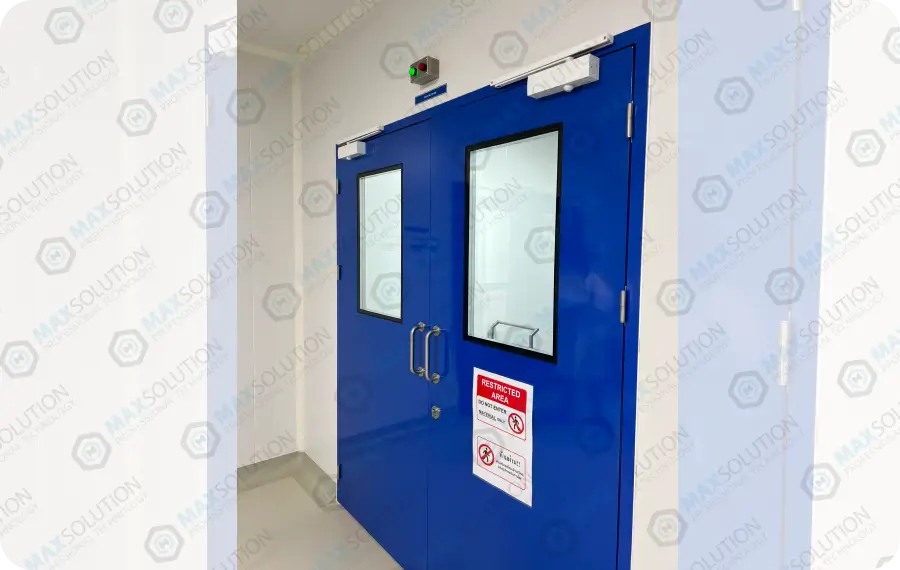 การติดตั้งระบบ Access Control ที่มีเซ็นเซอร์จับการเปิด/ปิดประตู และสามารถเปิดประตู 2 โดยที่ประตู 1 ต้องปิดสนิทก่อนเป็นการสร้างระบบการควบคุมการเข้า-ออก