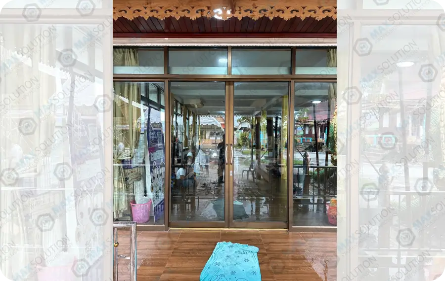 วัดน้อมประชาสรรค์ติดตั้งประตูอัตโนมัติ DORMA จำนวน 2 ชุด เป็นสวิงที่มีความทนทานและประสิทธิภาพสูงใช้เซ็นเซอร์ในการตรวจจับพร้อมระบบป้องกันการหนีบด้วยเซ็นเซอร์