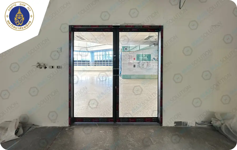 ติดดตั้งประตูอัตโนมัติ (Auto Door) DORMA เพื่อใช้เปิดประตูอัตโนมัติลดการสัมผัสพื้นผิวประตู ลดความเสี่ยงในการติดเชื้อ