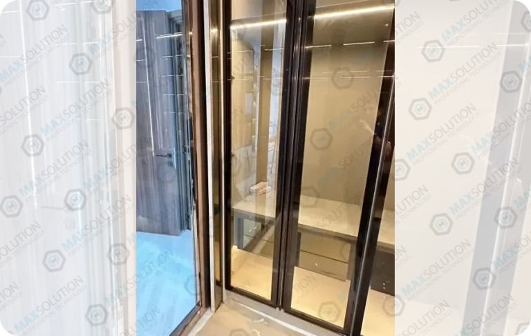ติดตั้งประตูบานเลื่อนอัตโนมัติ (Auto Door) ระบบมอเตอร์ล็อคพร้อมซ่อนรางไว้ด้านบนฝ้าพร้อมระบบสั่งงานผ่าน Smart Phone และสั่งการด้วยเสียง
