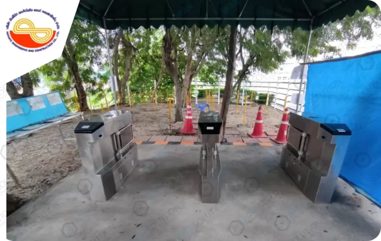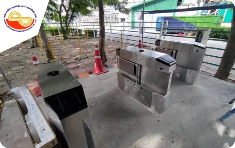 ติดตั้งระบบประตูกั้นไฟฟ้ารุ่น ESW-300 สำหรับลงเวลาและคัดกรองพนักงานก่อนเข้าพื้นที่พร้อมติดตั้งเครื่องสแกนใบหน้าเพิ่มเติมสำหรับลงเวลาการทำงาน