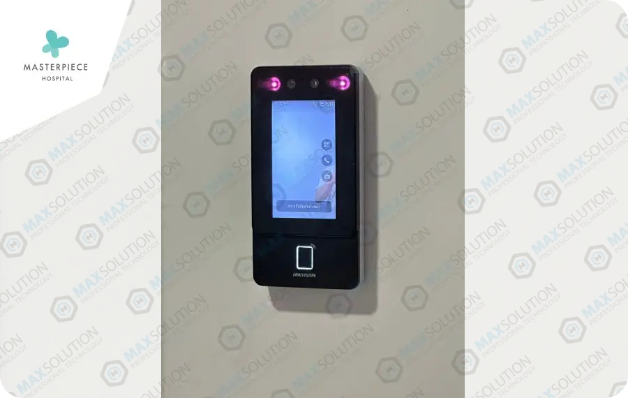 ติดตั้งเครื่องสแกนใบหน้า (FACE SCAN) รุ่น H342 เข้ากับประตูอัตโนมัติ Manusa เพื่อคัดกรองบุคคลในการเข้าห้องตรวจและผ่าตัดทางการแพทย์