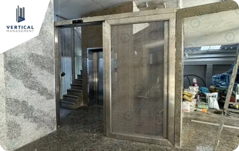 ติดตั้งประตูบานเลื่อนอัตโนมัติ DORGEN กับบานประตูและโครงสร้างสแตนเลสพร้อมตาข่าย เพื่อความแข็งแรงและเพื่อการระบายอากาศภายในผ่านตาข่ายของบาน