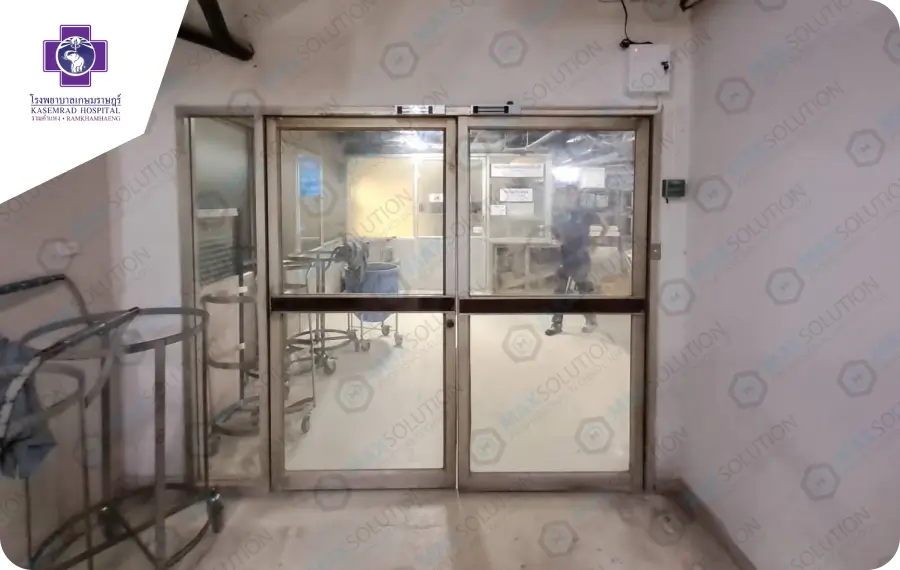 ติดตั้งระบบประตูอัตโนมัติ DORMA จำนวน 2 ชุด พร้อมเชื่อมต่อกับเครื่องสแกนลายนิ้วมือ F8 เพื่อควบคุมการเข้าพื้นที่ ที่ โรงพยาบาล WMC แจ้งวัฒนะ