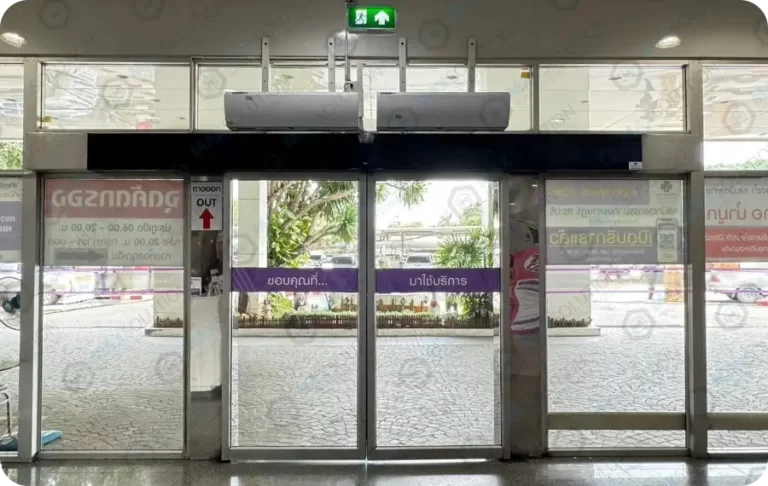 ติดตั้งประตูอัตโนมัติและเปลี่ยนเซ็นเซอร์ใหม่เป็น Optex Flex เพื่อเพิ่มระบบป้องกันหนีบและเพิ่มความปลอดภัยบริเวณประตูทางเข้าหลัก