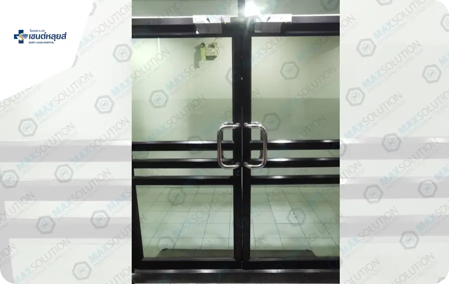 ติดตั้งระบบประตูบานเลื่อน DORGEN 2 ชุด และเชื่อมต่อกับระบบลิฟท์โดยจะทำการเปิดอัตโนมัติเมื่อลิฟท์จอด ณ ประตูนั้นๆ โดยใช้บานสแตนเลส