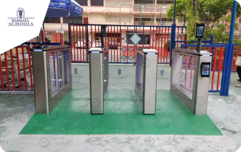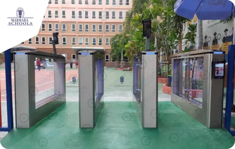 ติดตั้งประตู้กัน SWING GATE รุ่น ESW-950 พร้อมเครื่องสแกนใบหน้าสำหรับเข้า-ออกและบันทึกเวลาในการเข้าโรงเรียน