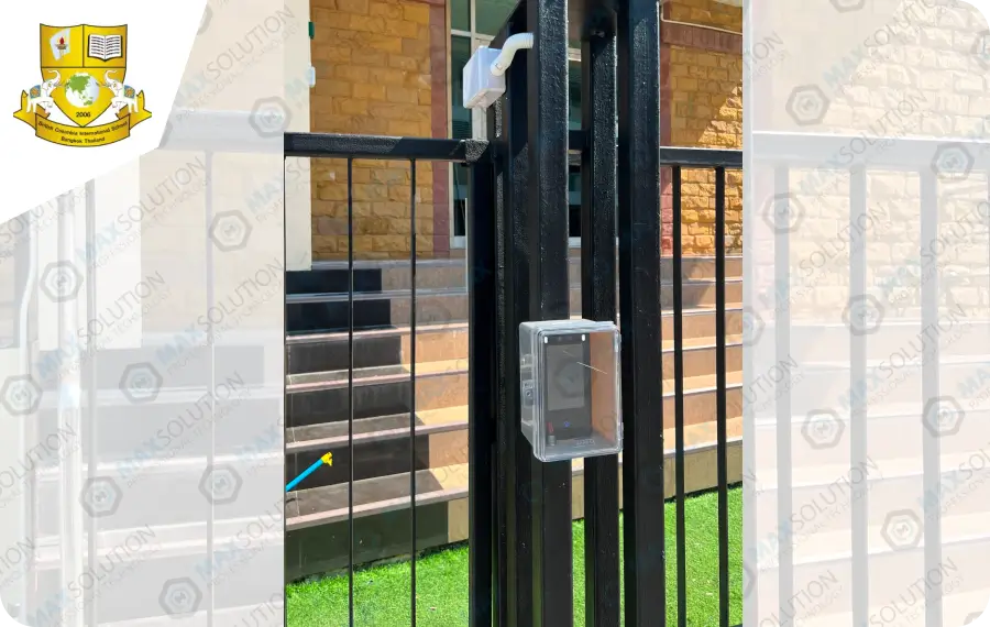 ติดตั้งระบบประตูกั้นไฟฟ้า รุ่น ESW-950 พร้อมด้วยเครื่องสแกนใบหน้ารุ่น M7 เพื่อให้นักเรียนและผู้ต้องการเข้าพื้นที่ต้องยืนยันตัวตนก่อนเพื่อความปลอดภัย
