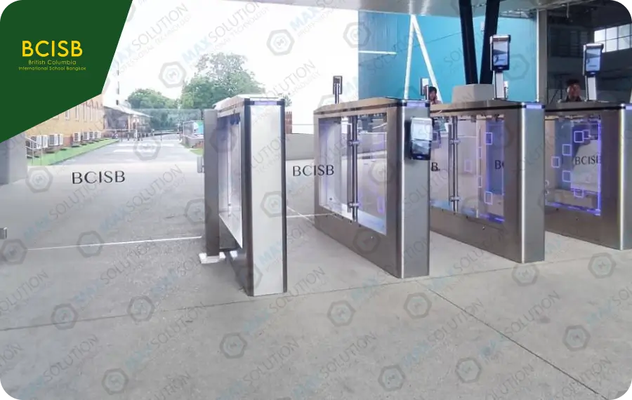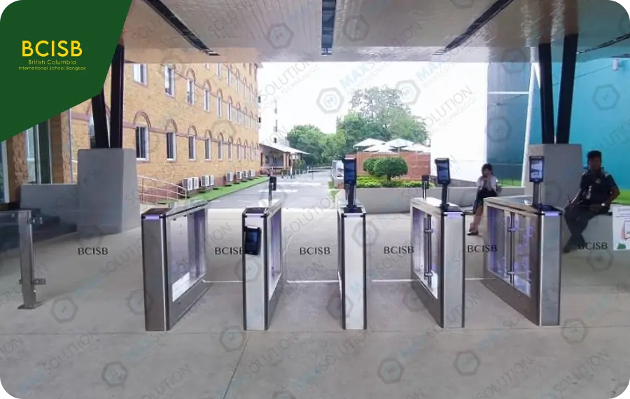 โรงเรียนนานาชาติ BCISB ติดตั้งระบบประตูกั้น Swing Gate Turnstile รุ่น ESW-950 พร้อมเครื่องสแกนใบหน้า (Face Scan) M7 หน้าทางเข้าโรงเรียน