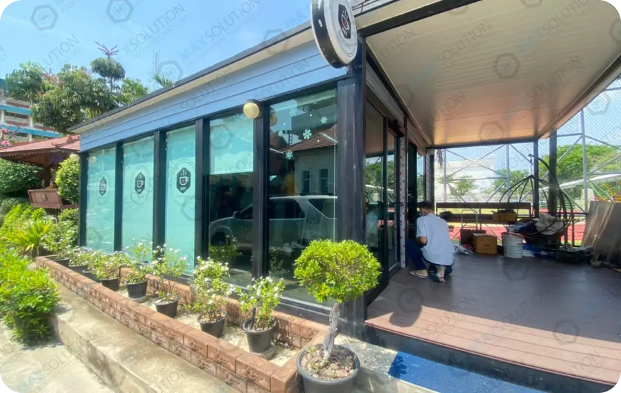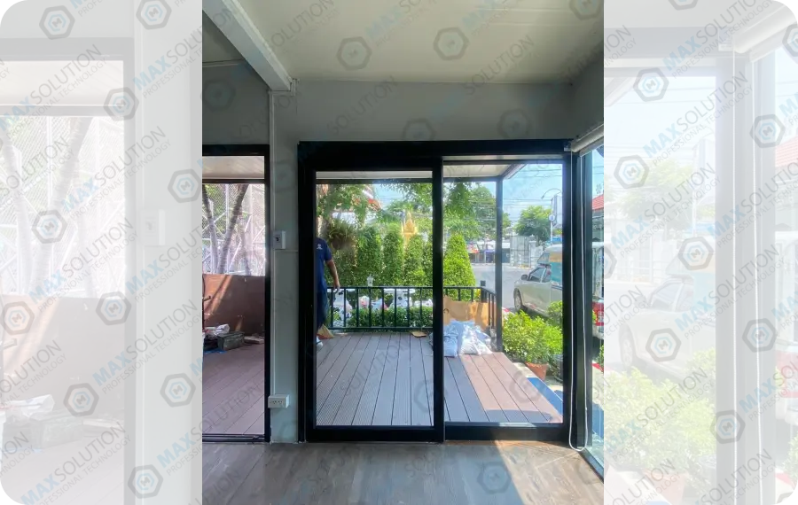 ติดตั้งระบบประตูบานเลื่อนอัตโนมัติ EZY ทดแทนชุดประตูเดิมที่่ชำรุด พร้อมรางและฝาครอบสีชา เพื่อความสวยงามบริเวณศาลาที่ใช้ในการทำกิจ