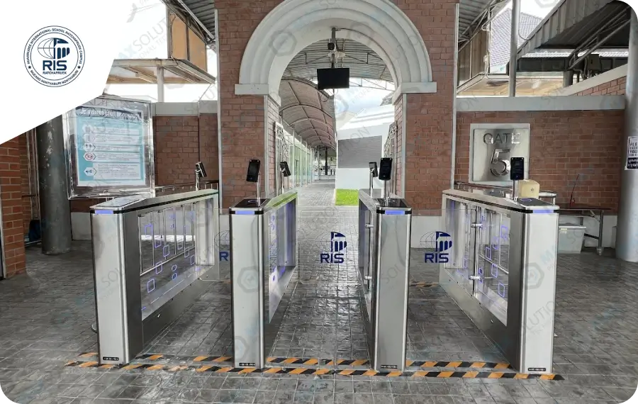 ติดตั้งประตูกั้นไฟฟ้าแบบปีกผีเสื้อ (Flap Gate Turnstile) สำหรับคัดกรองคนเข้าพื้นที่จำนวน 2 ช่องทางซึ่งสามารถใช้ได้ทั้งเข้าและออก