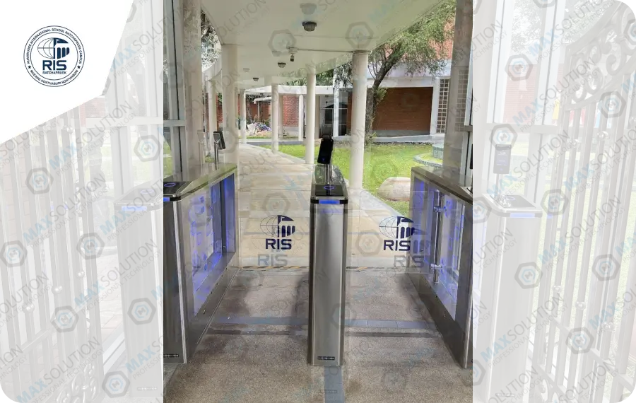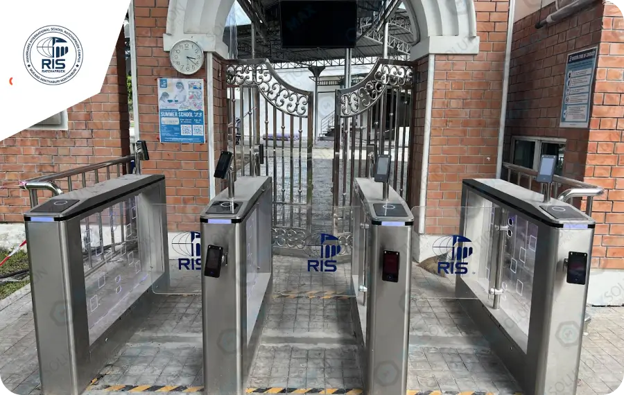 ติดตั้งประตูกั้น Swing Gate ESW-950 จำนวน 4 เลนพร้อมเครื่องสแกนใบหน้า(Face Scan) L4 เครื่องสแกนใบหน้าสำหรับลงเวลานักเรียน