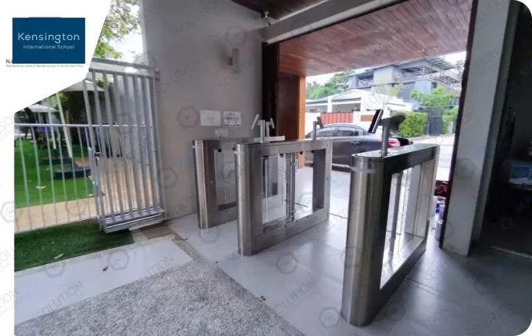 โรงเรียนนานาชาติ BCISB ติดตั้งระบบประตูกั้น Swing Gate Turnstile รุ่น ESW-950 พร้อมเครื่องสแกนใบหน้า (Face Scan) M7 หน้าทางเข้าโรงเรียน
