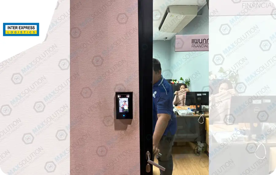 ติดตั้งเครื่องสแกนใบหน้า H342 (FACE SCAN) พร้อมชุดกลอนใช้ยืนยันตัวตนและบันทึกเวลาเข้าออกประตู การสแกนใบหน้าสามารถทำได้ภายในไม่กี่วินาทีและมีความแม่นยำสูง