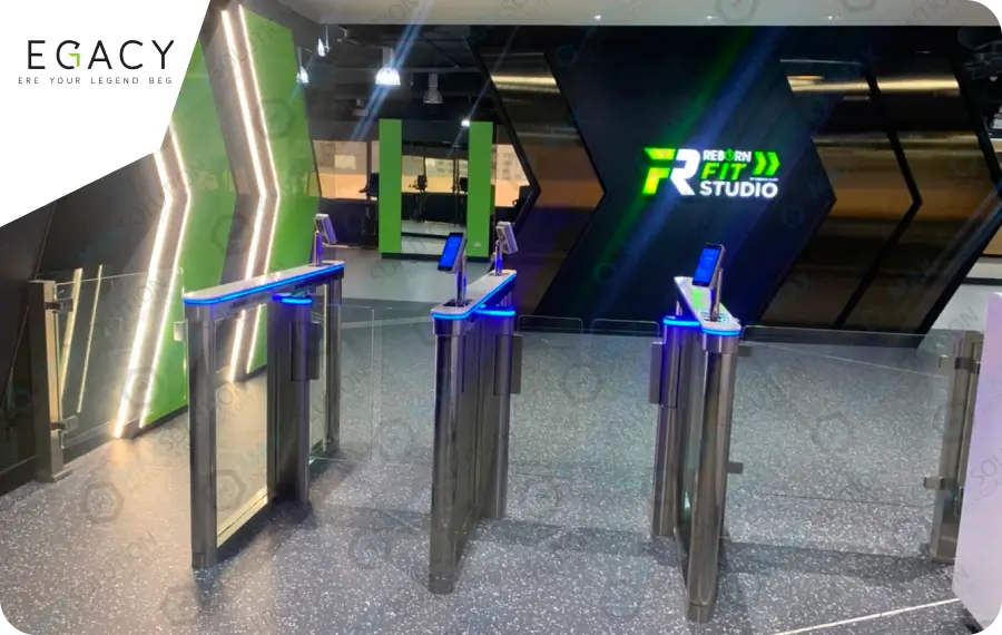 ติดตั้งระบบประตูกั้น Swing Gate Turnstile ESW-950 จำนวน 3 เลน พร้อม เครื่องสแกนใบหน้า(Face Scan) M7 จำนวน 6 เครื่อง บริเวณทางเข้าโรงอาหาร
