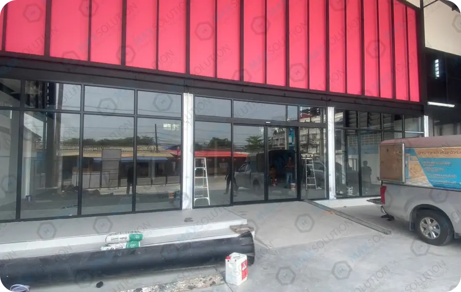 ติดตั้งระบบประตูบานเลื่อนอัตโนมัติ DORMA ในรูปแบบกระจกบานเปลือย (Flameless Auto Slide Door) ที่โสรสคลีนิคห้างพาราไดซ์ ศรีนครินทร์