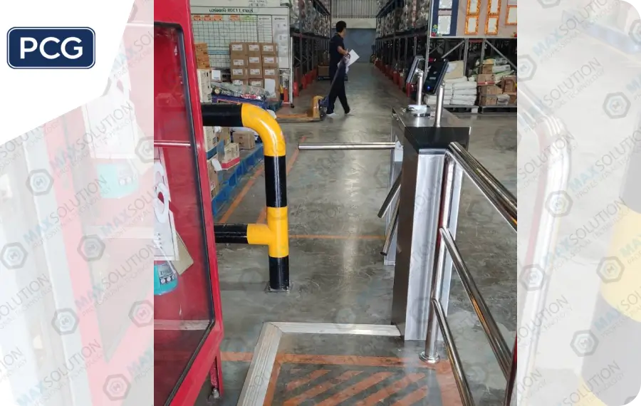 ติดตั้งเครื่องกั้นแบบ 3 ขา ( Tripod Turnstile ) รุ่นET400 และติดตั้งเครื่องสแกนใบหน้า L4 (FACE SCAN) จำนวน2เครื่องติดตั้งประตูก่อนเข้าโกดัง