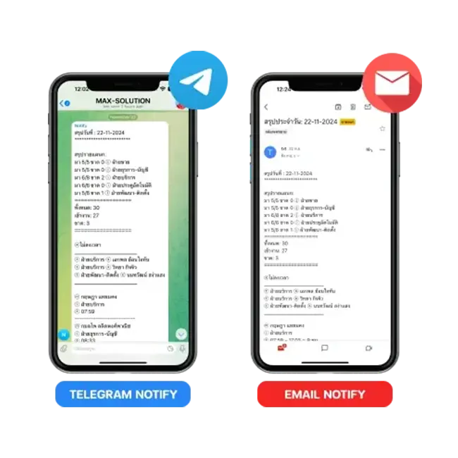 ระบบแจ้งการลงเวลาที่ให้คุณสามารถใช้งานได้ โดยไม่มีค่าใช้จ่ายใดๆเพิ่มเติม โดยสามารถส่งการลงเวลาผ่านแอพพลิเคชั่น เทเลแกรม และยังรองรับการส่งไปยัง Email ได้แบบเรียลไทม์ อีกทั้งยังตั้งให้ระบบส่งรายงานสรุปรูปแบบต่างๆตามเวลาที่ต้องการได้